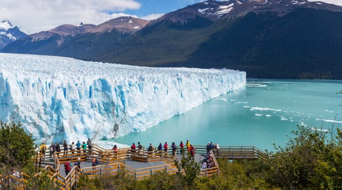 Com uma frente de cinco quilômetros e mais de 60 metros de altura, a barreira de gelo é parada obrigatória, pois oferece um espetáculo quando porções se desprendem e caem na água, formando um pequeno tsunami.