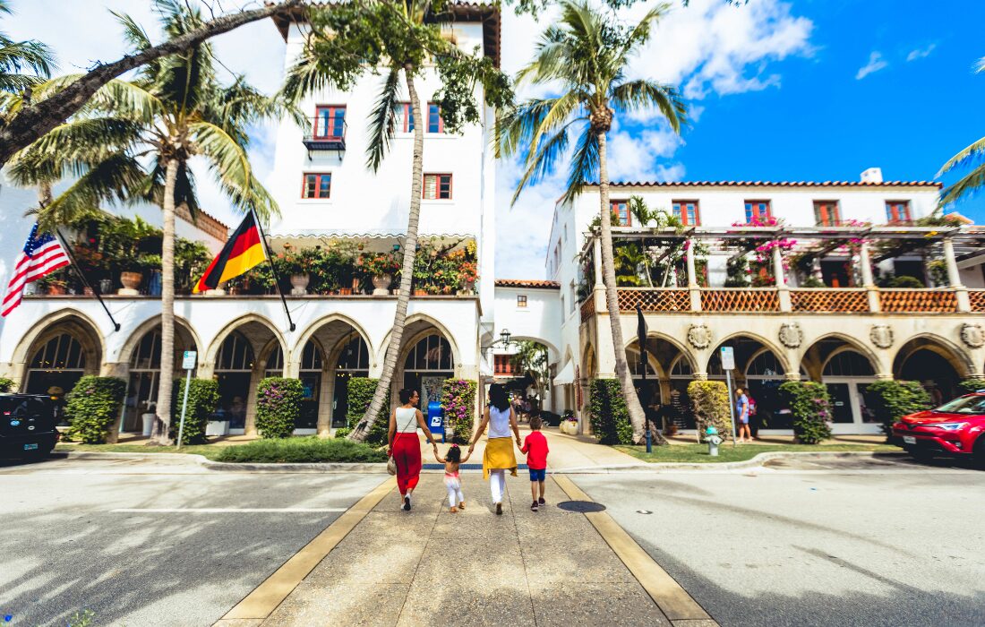Palm Beach é o nome do condado que se estende por cerca de 75 quilômetros de litoral, reunindo alguns dos endereços mais exclusivos e valorizados dos Estados Unidos. A ilha de Palm Beach propriamente dita concentra mansões monumentais e hotéis históricos, como o icônico The Breakers.