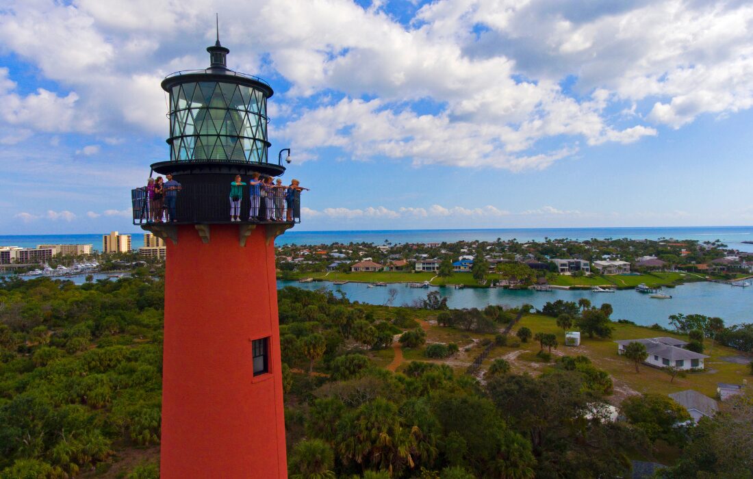 Jupiter é uma das cidades mais agradáveis do condado de Palm Beach, combinando natureza preservada e clima tranquilo. Seu principal cartão-postal é um farol superfotogênico, que teve uso estratégico durante a Segunda Guerra Mundial. A subida ao topo garante amplas vistas do rio Loxahatchee e da costa atlântica.