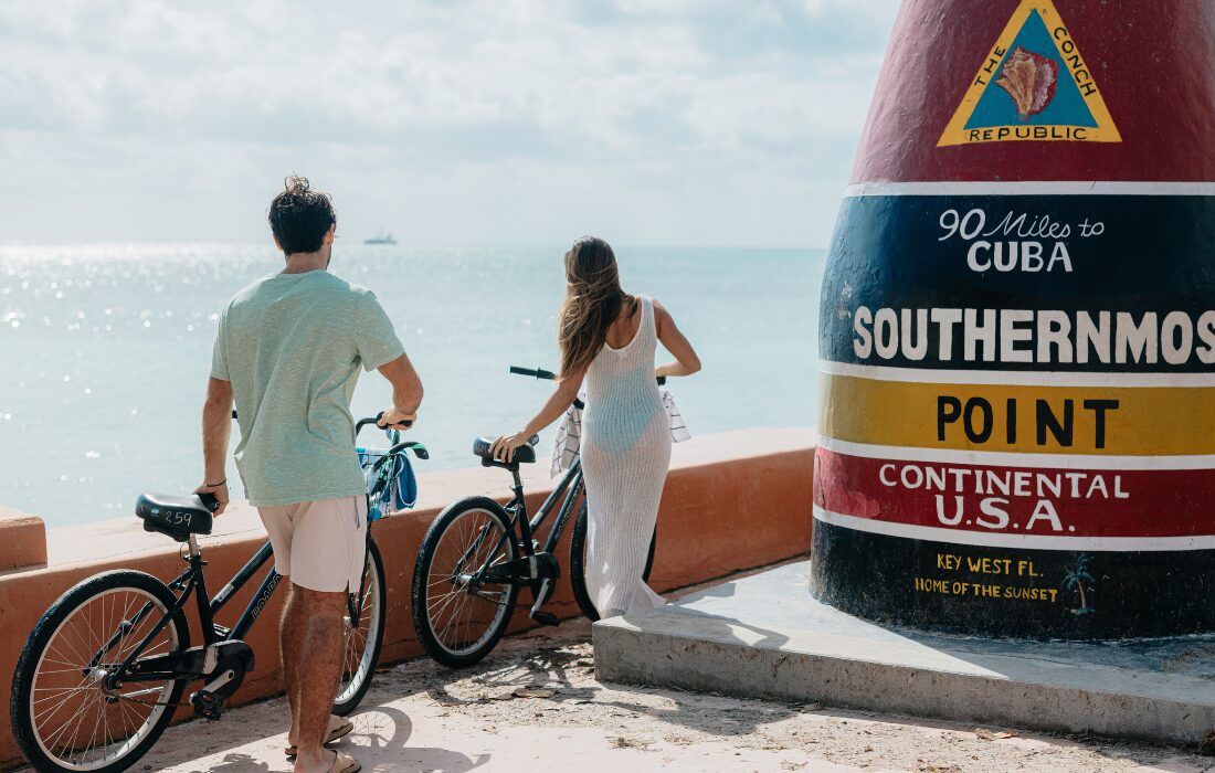 No caminho, vale parar em Key Largo, famosa pelos parques marinhos e mergulho em recifes (com direito até a uma estátua de Cristo submersa), e em Marathon, onde fica a icônica ponte Seven Mile Bridge. Já em Big Pine Key, o Bahia Honda State Park abriga uma das praias mais bonitas das Keys.