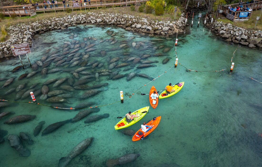Na costa oeste da Flórida, a cidade que abriga mais de 40 nascentes de água doce é conhecida como a “capital mundial do peixe-boi”, já que esses animais usam a região como refúgio, especialmente nos meses mais frios.