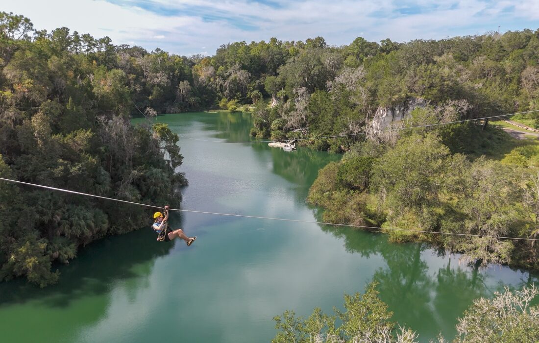 A Devil’s Den é uma caverna pré-histórica com lago azul e cristalino para snorkel e mergulho; Ginnie Springs reúne um sistema de nascentes e cavernas famosas pela visibilidade da água; o Ichetucknee Springs State Park protege fontes de águas claras, ideais para banho e flutuação; e o Paynes Prairie Preserve State Park oferece trilhas em que é possível observar jacarés.