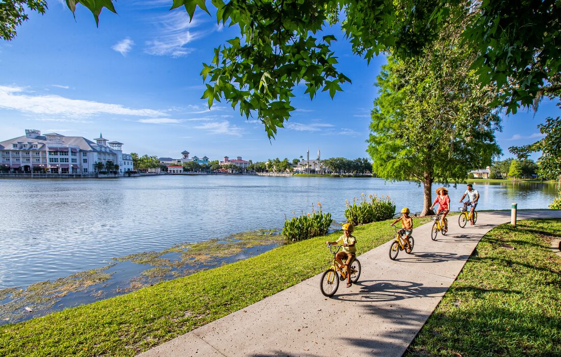 Criada nos anos 1990 pela Disney, Celebration é uma cidade planejada que parece saída de um filme. Ruas arborizadas, casas em estilo clássico americano e um centrinho charmoso às margens do lago compõem o cenário. Restaurantes, cafés e lojinhas se concentram na Market Street, enquanto trilhas e ciclovias reforçam o clima residencial e organizado.