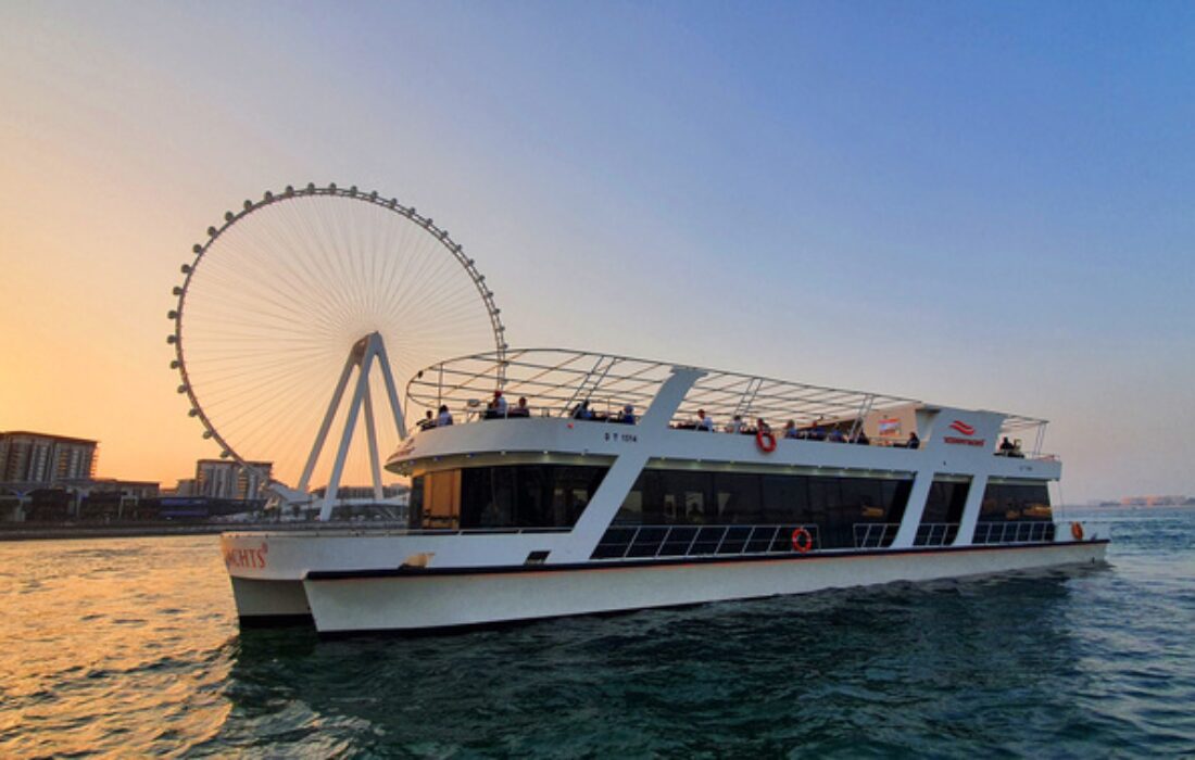 Entre as experiências incluídas está um cruzeiro com jantar ao pôr do sol pela Dubai Marina, com duração aproximada de 90 minutos. A atividade é realizada em embarcação da Xclusive Yachts e inclui refeição em formato de buffet durante o percurso.