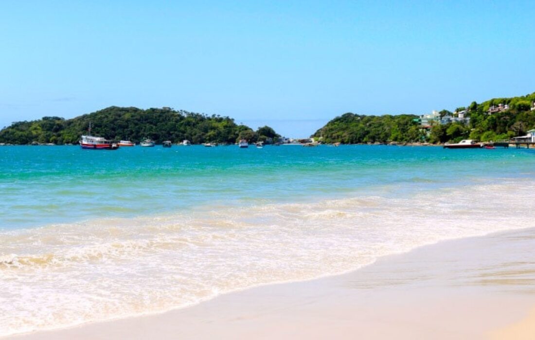 Em Bombinhas, Zimbros preserva clima familiar mesmo na alta temporada. O mar com poucas ondas forma piscinas naturais adequadas para crianças, e a praia reúne restaurantes e quiosques com boa oferta de comida e serviços.