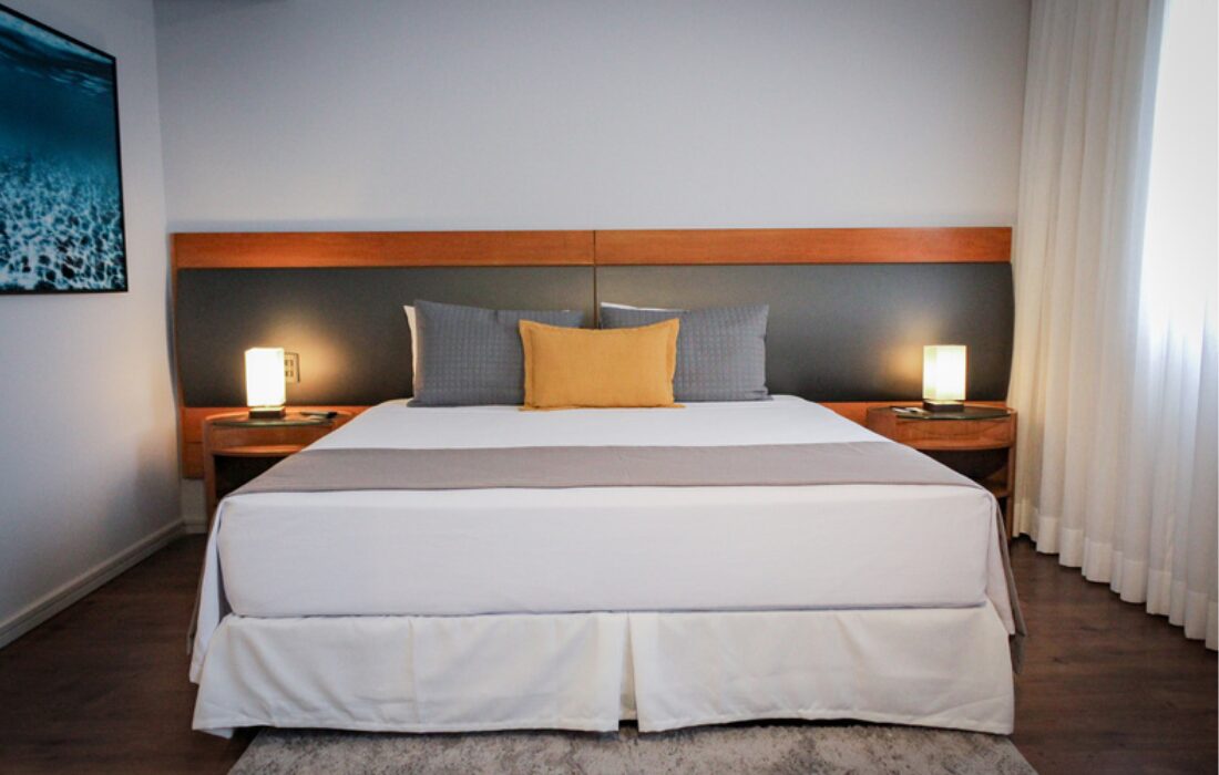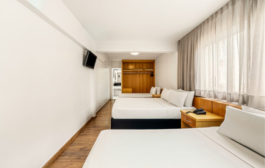 Com perfil funcional, oferece restaurante, estacionamento e acomodações para até quatro pessoas.
