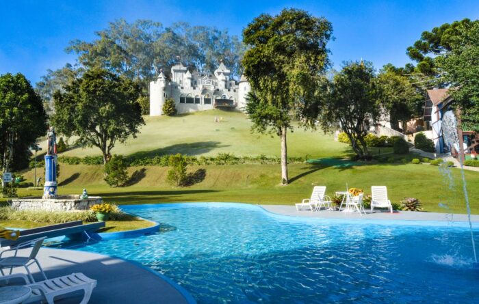 Hóspedes do Magique e da Fazenda têm acesso a toda a área de lazer do Village, já que é ali que ficam as piscinas, o Spa, restaurantes e o ícone do Le Canton, o Castelo Medieval.